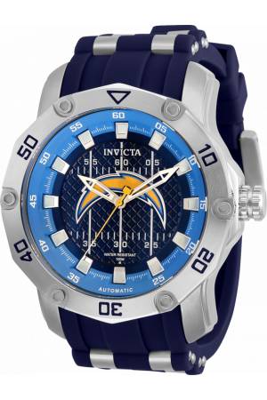 Band For Invicta NFL 32024, Band Material Silicone, Stainless Steel, Band Color Dark Blue, Steel, Band Width 26 mm, Band Length 200 mm, Buckle Type Buckle, Clasp Type Regular