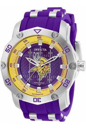 Band For Invicta NFL 32025, Band Material Stainless Steel, Silicone, Band Color Steel, Purple, Band Width 26 mm, Band Length 200 mm, Buckle Type Buckle, Clasp Type Regular