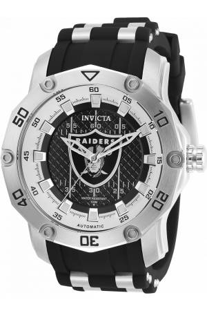 Band For Invicta NFL 32029, Band Material Stainless Steel, Silicone, Band Color Steel, Black, Band Width 26 mm, Band Length 200 mm, Buckle Type Buckle, Clasp Type Regular
