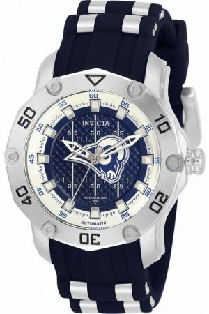 Band For Invicta NFL 32872, Band Material Stainless Steel, Silicone, Band Color Steel, Blue, Band Width 26 mm, Band Length 191 mm, Buckle Type Buckle, Clasp Type Regular