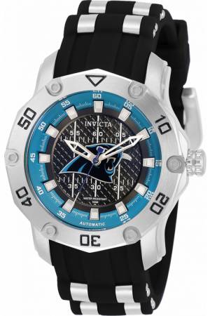 Band For Invicta NFL 32877, Band Material Stainless Steel, Silicone, Band Color Steel, Black, Band Width 20 mm, Band Length 191 mm, Buckle Type Buckle, Clasp Type Regular