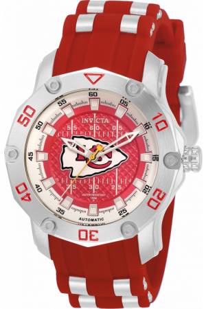 Band For Invicta NFL 32888, Band Material Stainless Steel, Silicone, Band Color Steel, Red, Band Width 20 mm, Band Length 191 mm, Buckle Type Buckle, Clasp Type Regular