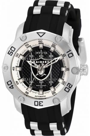 Band For Invicta NFL 32894, Band Material Stainless Steel, Silicone, Band Color Steel, Black, Band Width 20 mm, Band Length 191 mm, Buckle Type Buckle, Clasp Type