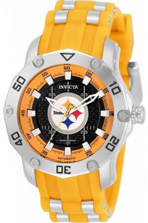 Band For Invicta NFL 32896, Band Material Stainless Steel, Silicone, Band Color Steel, Yellow, Band Width 20 mm, Band Length 191 mm, Buckle Type Buckle, Clasp Type