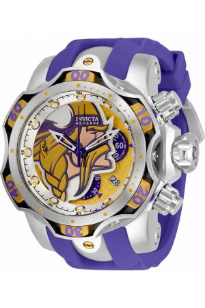 Band For Invicta NFL 33059, Band Material Aluminium, Silicone, Stainless Steel, Band Color Purple, Yellow, Steel, Band Width 26 mm, Band Length 210 mm, Buckle Type Buckle, Clasp Type Regular