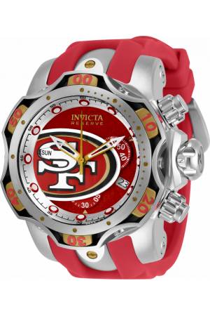 Band For Invicta NFL 33086, Band Material Aluminium, Silicone, Stainless Steel, Band Color Red, Gold, Steel, Band Width 26 mm, Band Length 210 mm, Buckle Type Buckle, Clasp Type Regular