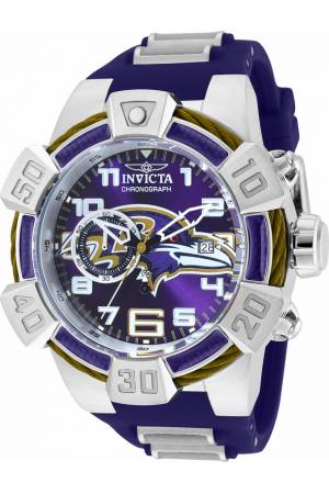 Band For Invicta NFL 35786, Band Material Glass Fiber, Silicone, Band Color Purple, White, Band Width 30 mm, Band Length 210 mm, Buckle Type Buckle, Clasp Type