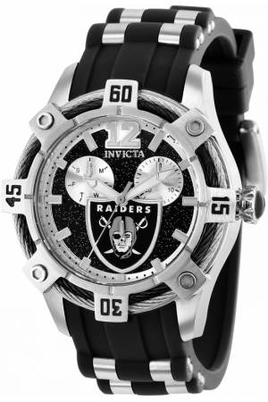 Band For Invicta NFL 35793, Band Material Silicone, Stainless Steel, Band Color Black, Steel, Band Width 20 mm, Band Length 200 mm, Buckle Type Buckle, Clasp Type