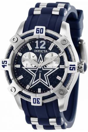 Band For Invicta NFL 35795, Band Material Silicone, Stainless Steel, Band Color Blue, Steel, Band Width 20 mm, Band Length 200 mm, Buckle Type Buckle, Clasp Type