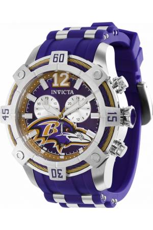 Band For Invicta NFL 35803, Band Material Silicone, Stainless Steel, Band Color Purple, Steel, Band Width 26 mm, Band Length 210 mm, Buckle Type Buckle, Clasp Type