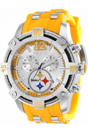 Band For Invicta NFL 35805, Band Material Silicone, Stainless Steel, Band Color Yellow, Steel, Band Width 26 mm, Band Length 210 mm, Buckle Type Buckle, Clasp Type