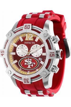 Band For Invicta NFL 35806, Band Material Silicone, Stainless Steel, Band Color Red, Steel, Band Width 26 mm, Band Length 210 mm, Buckle Type Buckle, Clasp Type