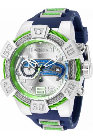 Band For Invicta NFL 35869, Band Material Silicone, Band Color Green, Blue, Band Width 30 mm, Band Length 210 mm, Buckle Type Buckle, Clasp Type