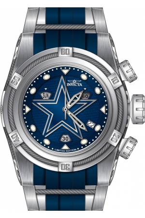 Band For Invicta NFL 41431, Band Material Silicone, Stainless Steel, Band Color Navy Blue, Grey, Steel, Band Width 35 mm, Band Length 210 mm, Buckle Type Buckle, Clasp Type Regular