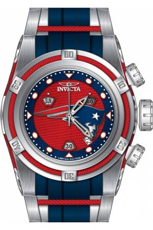 Band For Invicta NFL 41432, Band Material Silicone, Stainless Steel, Band Color Red, Blue, Steel, Band Width 35 mm, Band Length 210 mm, Buckle Type Buckle, Clasp Type Regular