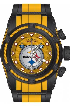 Band For Invicta NFL 41433, Band Material Silicone, Stainless Steel, Band Color Yellow, Black, Band Width 35 mm, Band Length 210 mm, Buckle Type Buckle, Clasp Type Regular
