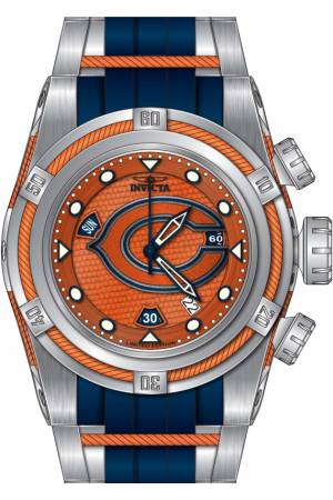 Band For Invicta NFL 41435, Band Material Silicone, Stainless Steel, Band Color Orange, Blue, Steel, Band Width 35 mm, Band Length 210 mm, Buckle Type Buckle, Clasp Type Regular