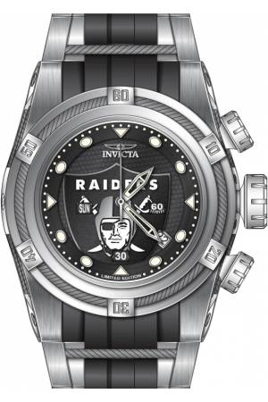 Band For Invicta NFL 41437, Band Material Silicone, Stainless Steel, Band Color Grey, Black, Steel, Band Width 35 mm, Band Length 210 mm, Buckle Type Buckle, Clasp Type Regular