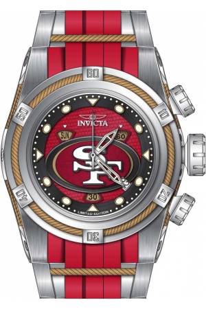 Band For Invicta NFL 41438, Band Material Silicone, Stainless Steel, Band Color Red, Brown, Steel, Band Width 35 mm, Band Length 210 mm, Buckle Type Buckle, Clasp Type Regular