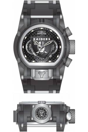 Band For Invicta NFL 41544, Band Material Silicone, Stainless Steel, Band Color Black, Steel, Band Width 34 mm, Band Length 210 mm, Buckle Type Buckle, Clasp Type Regular