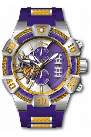 Band For Invicta NFL 41583, Band Material Silicone, Band Color Purple, Yellow, Band Width 30 mm, Band Length 210 mm, Buckle Type Buckle, Clasp Type