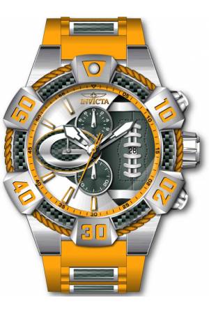 Band For Invicta NFL 41598, Band Material Glass Fiber, Silicone, Band Color Green, Yellow, Band Width 30 mm, Band Length 210 mm, Buckle Type Buckle, Clasp Type