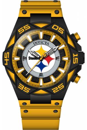 Band For Invicta NFL 41760, Band Material Silicone, Stainless Steel, Band Color Yellow, Black, Band Width 30 mm, Band Length 210 mm, Buckle Type Buckle, Clasp Type