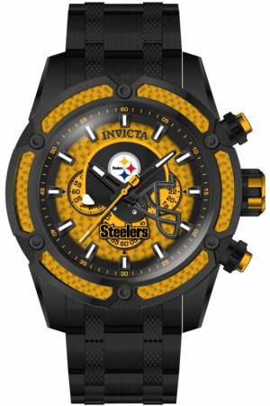 Band For Invicta NFL 41808, Band Material Stainless Steel, Band Color Black, Band Width 26 mm, Band Length 198 mm, Buckle Type Fold over safety, Clasp Type