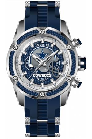 Band For Invicta NFL 41865, Band Material Silicone, Stainless Steel, Band Color Blue, Steel, Band Width 26 mm, Band Length 210 mm, Buckle Type Buckle, Clasp Type