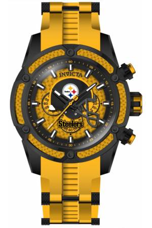 Band For Invicta NFL 41869, Band Material Silicone, Stainless Steel, Band Color Yellow, Black, Band Width 26 mm, Band Length 210 mm, Buckle Type Buckle, Clasp Type