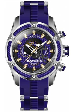 Band For Invicta NFL 41877, Band Material Silicone, Stainless Steel, Band Color Purple, Steel, Band Width 26 mm, Band Length 210 mm, Buckle Type Buckle, Clasp Type