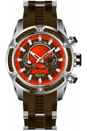 Band For Invicta NFL 41887, Band Material Silicone, Stainless Steel, Band Color Brown, Steel, Band Width 26 mm, Band Length 210 mm, Buckle Type Buckle, Clasp Type