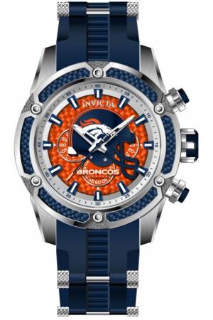 Band For Invicta NFL 41890, Band Material Silicone, Stainless Steel, Band Color Blue, Steel, Band Width 26 mm, Band Length 210 mm, Buckle Type Buckle, Clasp Type