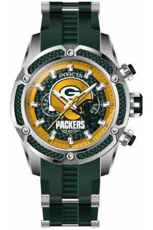 Band For Invicta NFL 41895, Band Material Silicone, Stainless Steel, Band Color Green, Steel, Band Width 26 mm, Band Length 210 mm, Buckle Type Buckle, Clasp Type