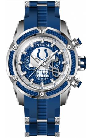 Band For Invicta NFL 41899, Band Material Silicone, Stainless Steel, Band Color Blue, Steel, Band Width 26 mm, Band Length 210 mm, Buckle Type Buckle, Clasp Type