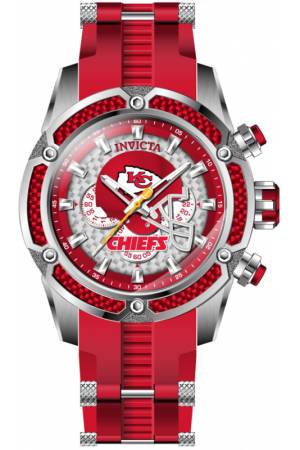 Band For Invicta NFL 41901, Band Material Silicone, Stainless Steel, Band Color Red, Steel, Band Width 26 mm, Band Length 210 mm, Buckle Type Buckle, Clasp Type
