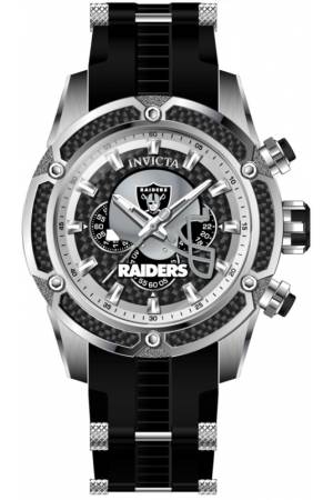 Band For Invicta NFL 41903, Band Material Silicone, Stainless Steel, Band Color Black, Steel, Band Width 26 mm, Band Length 210 mm, Buckle Type Buckle, Clasp Type