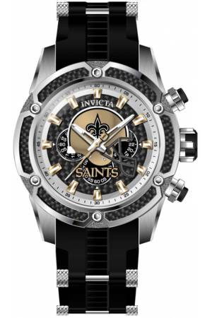 Band For Invicta NFL 41912, Band Material Silicone, Stainless Steel, Band Color Black, Steel, Band Width 26 mm, Band Length 210 mm, Buckle Type Buckle, Clasp Type