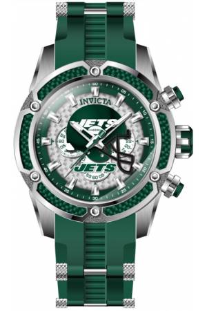 Band For Invicta NFL 41918, Band Material Silicone, Stainless Steel, Band Color Green, Steel, Band Width 26 mm, Band Length 210 mm, Buckle Type Buckle, Clasp Type