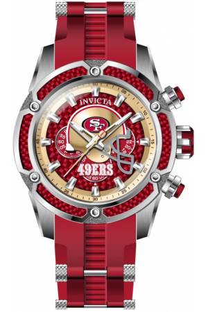 Band For Invicta NFL 41923, Band Material Silicone, Stainless Steel, Band Color Red, Steel, Band Width 26 mm, Band Length 210 mm, Buckle Type Buckle, Clasp Type