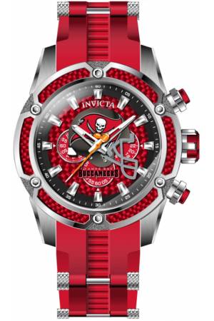 Band For Invicta NFL 41927, Band Material Silicone, Stainless Steel, Band Color Red, Steel, Band Width 26 mm, Band Length 210 mm, Buckle Type Buckle, Clasp Type