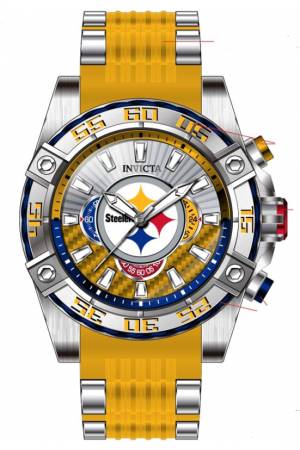 Band For Invicta NFL 41965, Band Material Silicone, Stainless Steel, Band Color Yellow, Steel, Band Width 26 mm, Band Length 210 mm, Buckle Type Buckle, Clasp Type