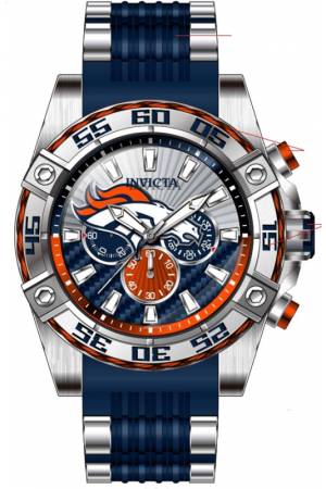 Band For Invicta NFL 41974, Band Material Silicone, Stainless Steel, Band Color Blue, Steel, Band Width 26 mm, Band Length 210 mm, Buckle Type Buckle, Clasp Type