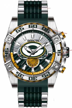 Band For Invicta NFL 41976, Band Material Silicone, Stainless Steel, Band Color Dark Green, Steel, Band Width 26 mm, Band Length 210 mm, Buckle Type Buckle, Clasp Type