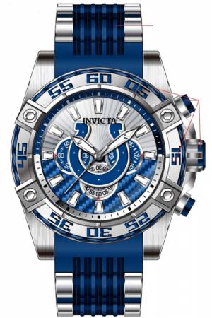 Band For Invicta NFL 41978, Band Material Silicone, Stainless Steel, Band Color Blue, Steel, Band Width 26 mm, Band Length 210 mm, Buckle Type Buckle, Clasp Type