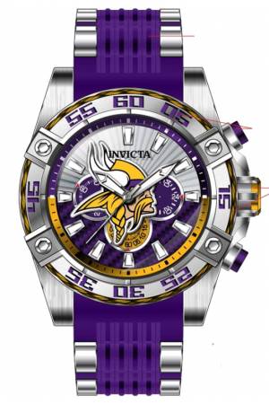 Band For Invicta NFL 41985, Band Material Silicone, Stainless Steel, Band Color Purple, Steel, Band Width 26 mm, Band Length 210 mm, Buckle Type Buckle, Clasp Type