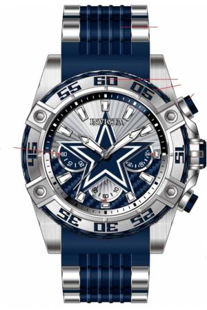 Band For Invicta NFL 41995, Band Material Silicone, Stainless Steel, Band Color Blue, Steel, Band Width 22 mm, Band Length 200 mm, Buckle Type Buckle, Clasp Type