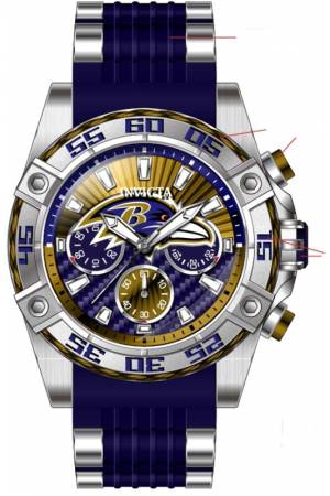 Band For Invicta NFL 41997, Band Material Silicone, Stainless Steel, Band Color Purple, Steel, Band Width 22 mm, Band Length 200 mm, Buckle Type Buckle, Clasp Type