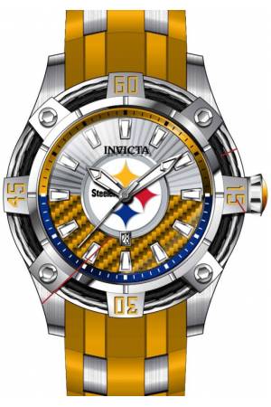 Band For Invicta NFL 42073, Band Material Silicone, Stainless Steel, Band Color Yellow, Steel, Band Width 26 mm, Band Length 210 mm, Buckle Type Buckle, Clasp Type