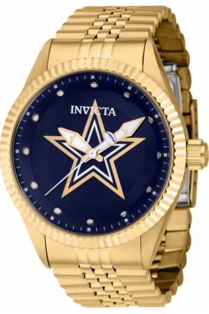 Band For Invicta NFL 42425, Band Material Stainless Steel, Band Color Gold, Band Width 22 mm, Band Length 205 mm, Buckle Type Fold over, Clasp Type